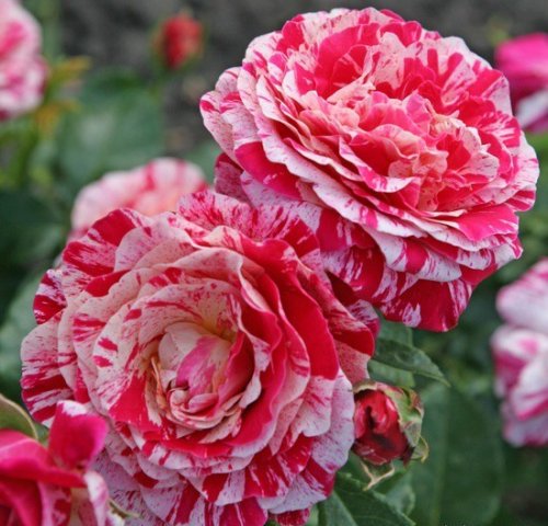 Tai gali būti gelsvas, kreminis, geltonas, baltas, tamsiai raudonas, arba dryžuotas. Vienu metu ant vieno krūmo gali būti visų spalvų įvairovė. Pumpuras 6-8 cm skersmens. Krūmo aukštis 60-80 cm. Silpnas aromatas. Būtina uždengti.