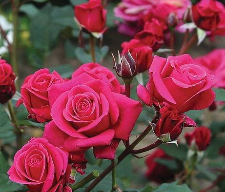- Prabangūs, nuostabūs, sodriai raudoni pumpurai, atsiveriantys į tamsiai rausvą spalvą. Vertikaliai augantys, stiprūs.