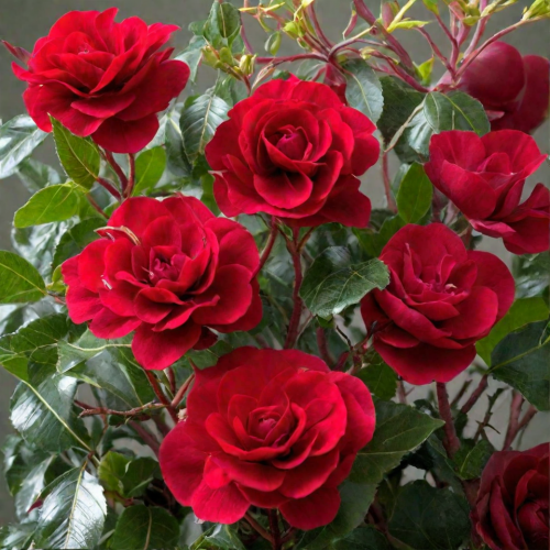 - Ši rožė bus stiprus akcentas sode. Pumpurai, susibūrę į grupes, gėlės yra tamsiai raudonos. Blizgūs lapai suteikia gražų kontrastą. Rožių krūmai gausiai ir ilgai žydi iki šalnų. Tvirtas atsparumas šalčiui. Super gausus žydėjimas.