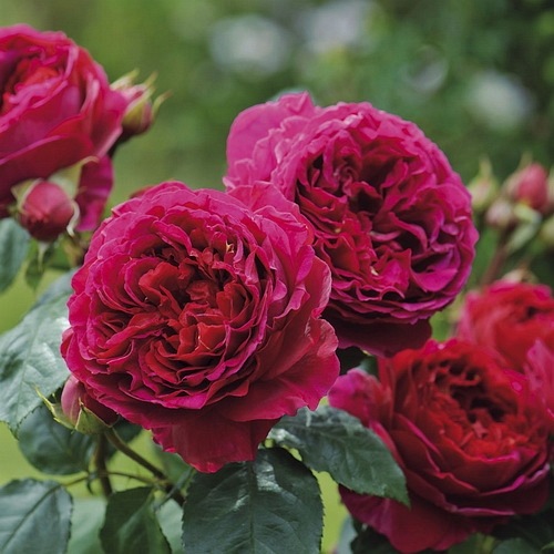 Yra labai mažai rožių, kurios būtų tokios paklausios kaip sodriai raudonos rožės, ir nėra kitų rožių, kurias būtų taip sunku veisti. Heathcliff yra gražus šios spalvos anglų rožių šeimos papildymas. Veislė išsiskiria didelėmis pilnaviduriais gėlėmis. Spalva tamsiai raudona, šiek tiek šilto tono. Krūmas gana stačias, lapija tamsiai žalia, blizga, atspari ligoms. Kvapas ir malonus, ir neįprastas – arbatos rožių aromatų mišinys su senais ir vos juntamu kedro aromatu.