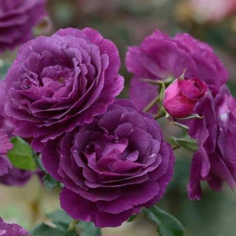 Žiedai puodelio formos, vidutiniškai dvigubi, ryškūs, violetiniai, alyviniai arba rausvai violetiniai su šviesesnėmis juostelėmis, susitelkę mažose kekėse. Kvapas stiprus. Žydėjimas kartojasi visą sezoną. Krūmai vešlūs ir stiprūs. Francois Dorieux II, Prancūzija, 2007 m.