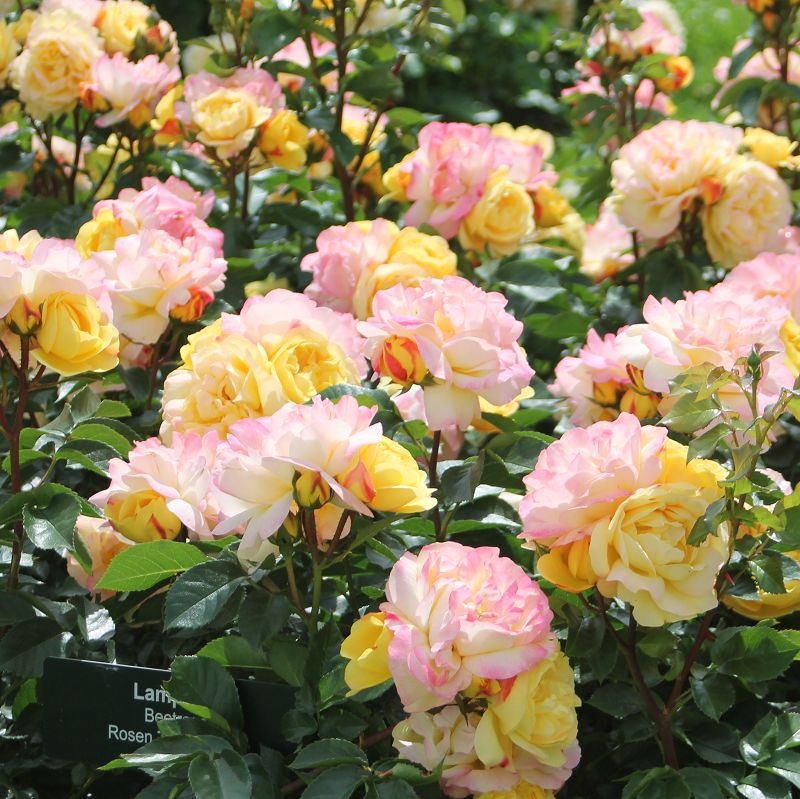 Energingai auganti floribunda rožė. Augalai yra ypač krūminiai, išaugina daug ūglių ir yra atsparūs. Palyginti vėlai pasirodančios gėlės primena apvalius popierinius žibintus. Vidutinio dydžio žiedai ryškiai geltoni, labai pilni ir dvižiedžiai. Išorinėje žiedlapių pusėje yra raudona liepsna. Lampion žydi tankiai išpuoštais žiedynais, dažniausiai su 3–4 šoniniais pumpurais. Lapija intensyvi tamsiai žalia, labai blizgi ir itin sveika.